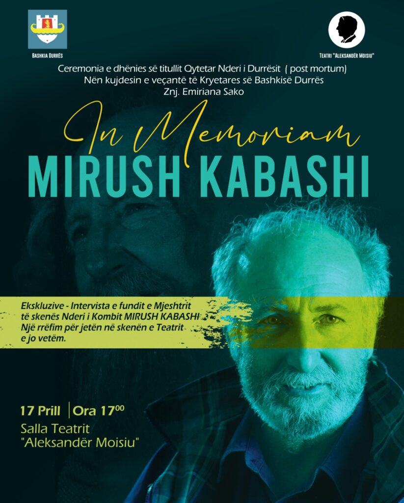 Kjo intervistë është zhvilluar në ambientet e teatrit të Durrësit, institucion në të cilin Mirush Kabashi hodhi hapat e parë në zhvillimin e karrierës së tij.