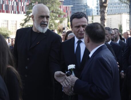 Të dy kryeministrat, Edi Rama dhe Albin Kurti duket se kanë shkrirë akujt mes tyre. Gjatë ceremonisë mortore ku është përcjellë arkëmorti i ish-kryeministrit Fatos Nano, Rama e Kurti shihen duke biseduar ndërsa ecin përgjatë Bulevardit “Dëshmorët e Kombit”.