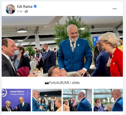 Kryeministri Edi Rama ka publikuar një album me foto nga Konferenca e Klimës, Cop26 në Glasgow, Skoci ku po merr pjesë.