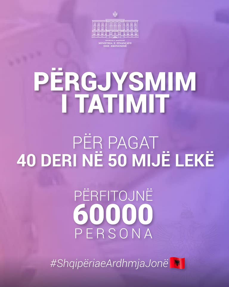 Kujtojmë që më herët Kryeministri ka konfirmuar se nga 1 korriku, për pagat deri në 40 mijë lekë do të jetë zero taksim.