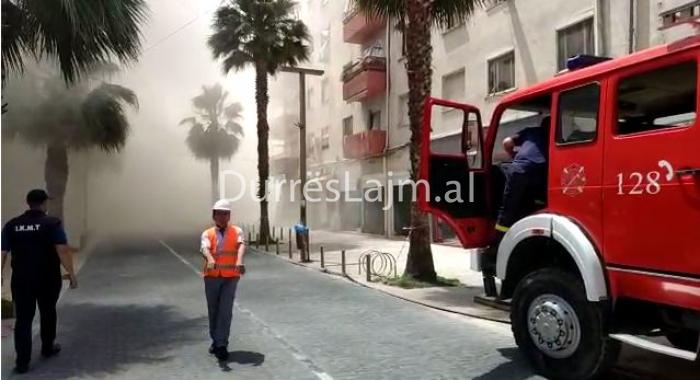 Një re e madhe tymi është formuar pas shembjes me tritol të pallatit 6 katësh në bulevardin “Dyrrah”.