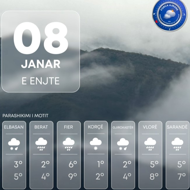 Ditën e sotme vendi ynë do të ndikohet nga kushte atmosferike të paqëndrueshme. Moti parashikohet me vranësira mesatare deri të dendura.