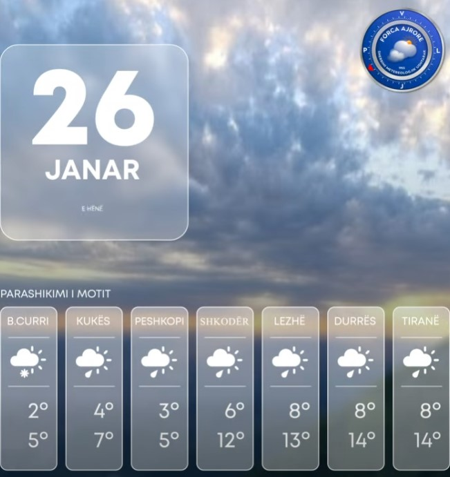 Për ditën e hënë vendi ynë do të ndikohet nga kushte atmosferike kryesisht të paqëndrueshme.