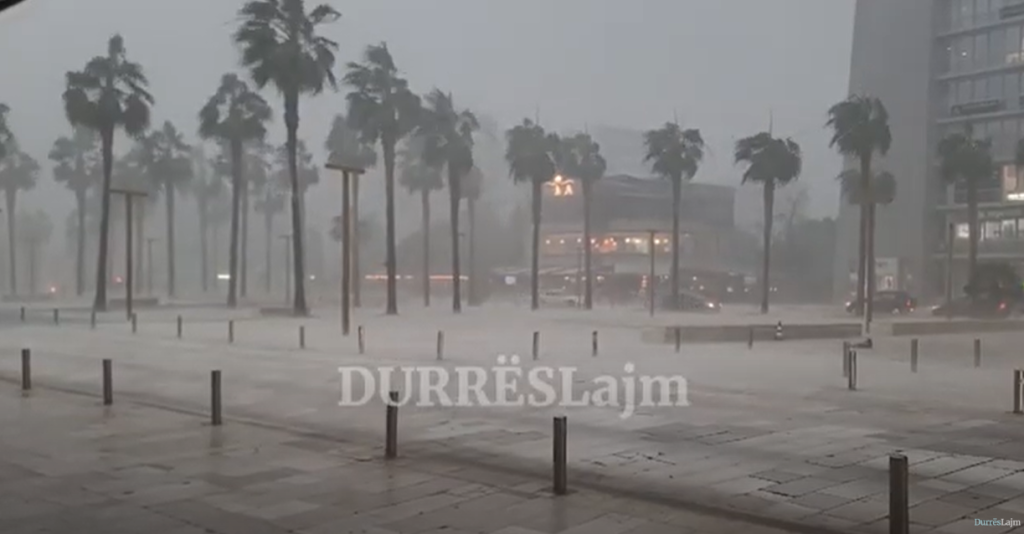 Reshje të dendura shiu në Durrës, përmbyten rrugët (VIDEO)