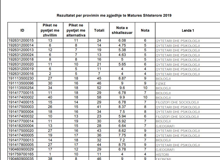 Dalin rezultatet e provimit të fundit të “Maturës Shtetërore 2019”, ato të provimit me zgjedhje.