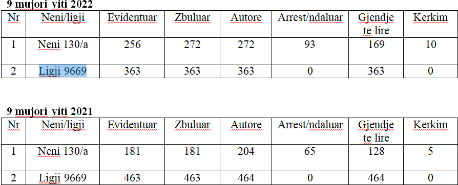 Statistikat policore dëshmojnë një rritje eksponenciale të rasteve të dhunës në periudhën janar-shtator 2022, krahasuar me 9 mujorin e një viti më parë.
