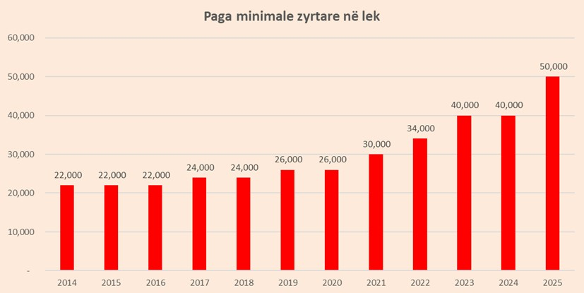 Paga minimale në janar ishte 25% më e lartë se në 2024 dhe 66 % më e lartë se në 2021, duke synuar rritjen e të ardhurave dhe përmirësimin e standardeve të jetesës. Megjithatë, për fabrikat prodhuese, kjo rritje po përkthehet në një presion të fortë mbi kostot dhe konkurrueshmërinë.
