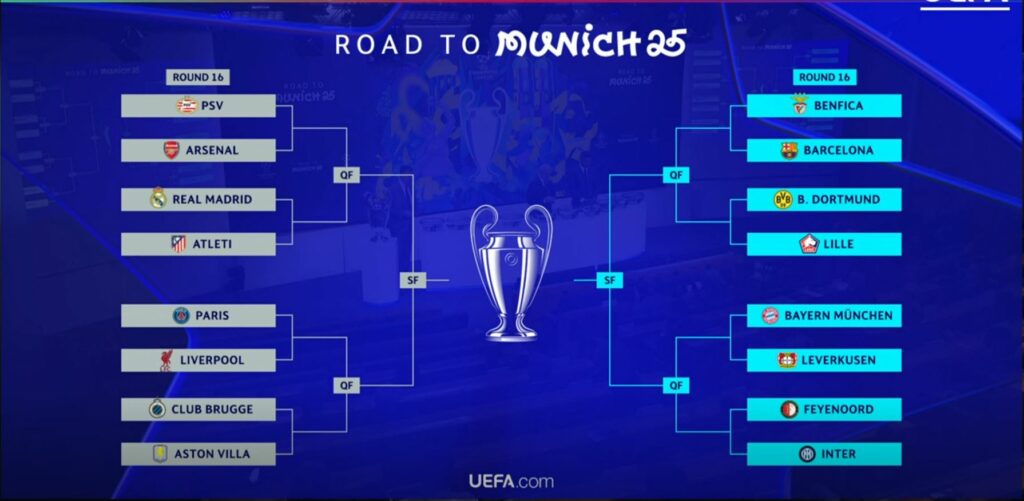 Nëse nuk ka surpriza, në çerekfinale na presin përballje të mëdha. Sipas shortit, fituesi i çiftit Feyenood-Inter do të përballet me fituesin e Bayern Munich-Bayer Leverkusen.