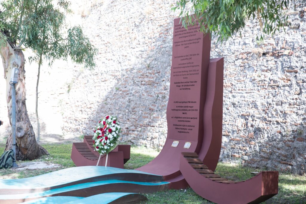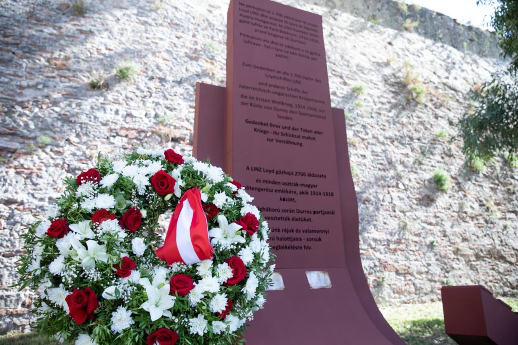 “Zhvilluam homazhe dhe vendosëm kurora me lule në këtë memorial të ndërtuar në përkujtim të 2700 viktimave të anijes Loyd LINZ dhe anijeve të tjera të Marinës Austro-Hungareze të cilët humbën jetën gjatë luftës së Parë Botërore, 1914-1918, pranë brigjeve të Durrësit”,- shrkuan Sako.