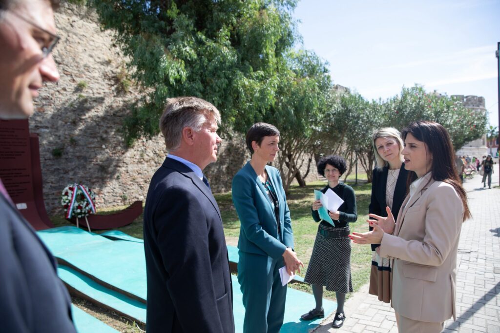 Më pas, Sako, së bashku me ambasadoren Zach, ambasadoren e Hungarisë, znj.Martina Laura Kasnyik si dhe përfaqësues të Kryqit të Zi Austriak kanë marrë pjesë në ceremoninë përkujtimore në memorialin e anijes së mbytur austro-hungareze që ndodhet pranë mureve të kalasë.