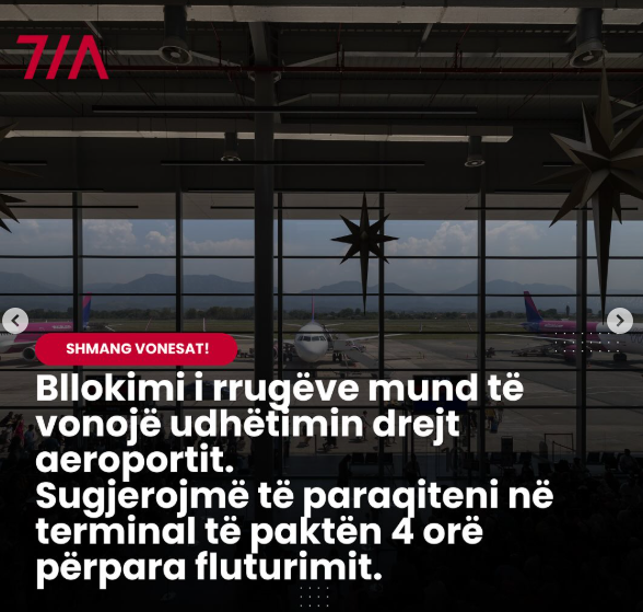 Më 15 dhe 16 maj 2025, për shkak të zhvillimit të Samitit Evropian (European Summit) në Tiranë, priten bllokime të konsiderueshme të rrugëve në qytet dhe zonat përreth. Këto bllokime mund të ndikojnë në kohën e udhëtimit drejt Aeroportit Ndërkombëtar të Tiranës (TIA), ndaj rekomandohet që udhëtarët të paraqiten në terminal të paktën 4 orë përpara fluturimit.