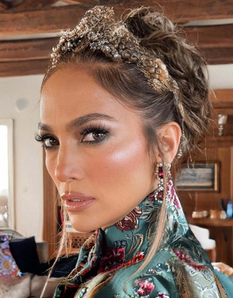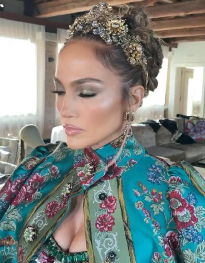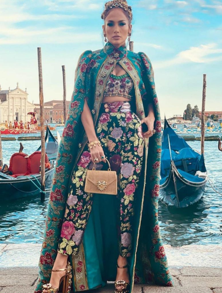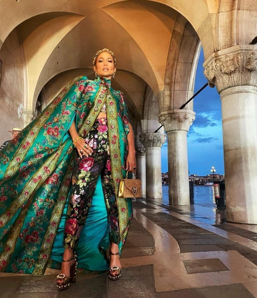 Jennifer Lopez mori gjithë vëmendjen sapo hipi në pasarelë. Me pantallona e crop top me lule, një pelerinë e kapelë si dhe bizhuteri të rënda, veshja e saj dukej ekstravagante dhe moderne njëkohësisht. Ndër të tjerë, këngëtarja ra në sy me imazhin e saj, duke treguar edhe njëherë se vitet për të, janë thjesht numra.