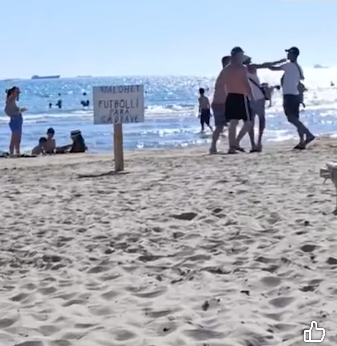 Sipas një qytetari që ka dërguar videon, dy të rinj që po luanin me top në rërën pranë çadrave, kanë debatuar me punonjësin e plazhit pasi ky i fundit u kërkoi të ndalonin lojën, pasi po shqetësonin pushuesit e tjerë.