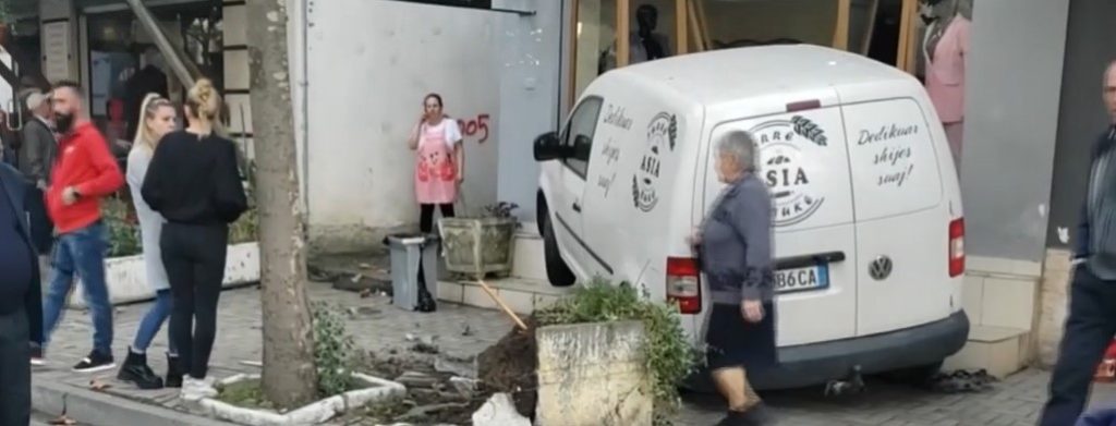 Mësohet se ishte një grua në drejtimin e mjetit, e cila ka humbur kontrollin dhe për pasojë autovetura ka marrë superxhiro dhe ka përfunduar në hyrjen e një dyqani me veshje.