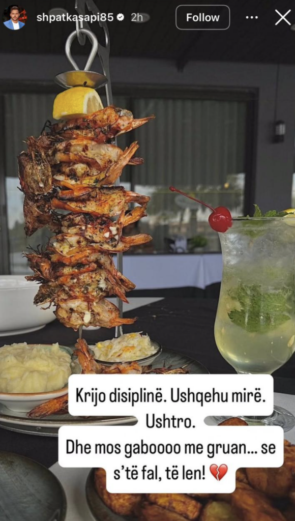 “Krijo disiplinë. Ushqehu mirë. Ushtro. Dhe mos gabo me gruan, se s’të fal, të lë!”, shkroi ai, duke e mbyllur mesazhin me një reflektim të hidhur, që la vend për shumë interpretime.