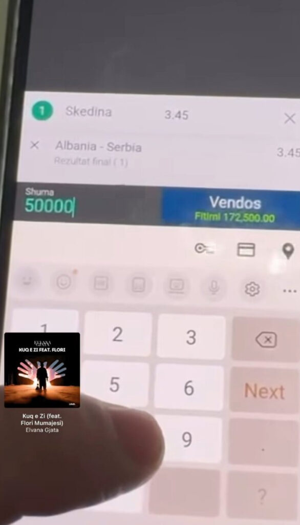 Ai ka vendosur 50,000 lekë në bast për fitoren e Shqipërisë, duke besuar fort në kuqezinjtë. Videot që po qarkullojnë në rrjet e tregojnë reperin teksa vendos skedinën me kuotën 3.45, që në rast fitoreje do t’i sillte 172,500 lekë.