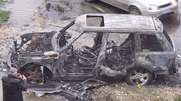 Automjeti range rover, u dogj pak minuta pas atentatit, brenda të cilit u gjend një armë tip Scorpions, por edhe një palë targa. Sipas verifikimeve të policisë, targat rezultojnë të vjedhura në Tiranë, në datën 20 qershor të vitit të kaluar dhe i përkasin një mjeti tip Ford.