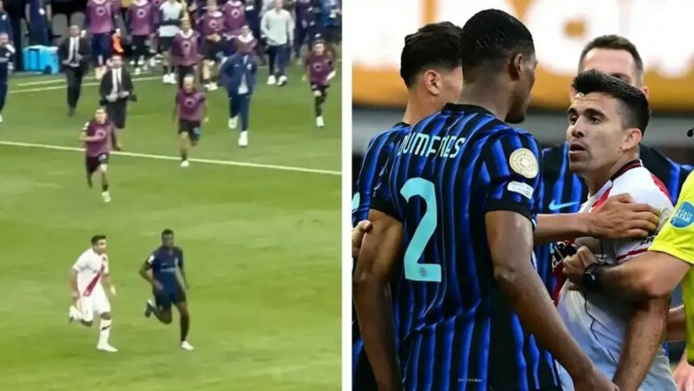 Marcos Acuna dhe Denzel Dumfries ishin në qendër të konfliktit, ndërsa bashkëlojtarët dhe stafet ndërhynë për t’i ndarë.