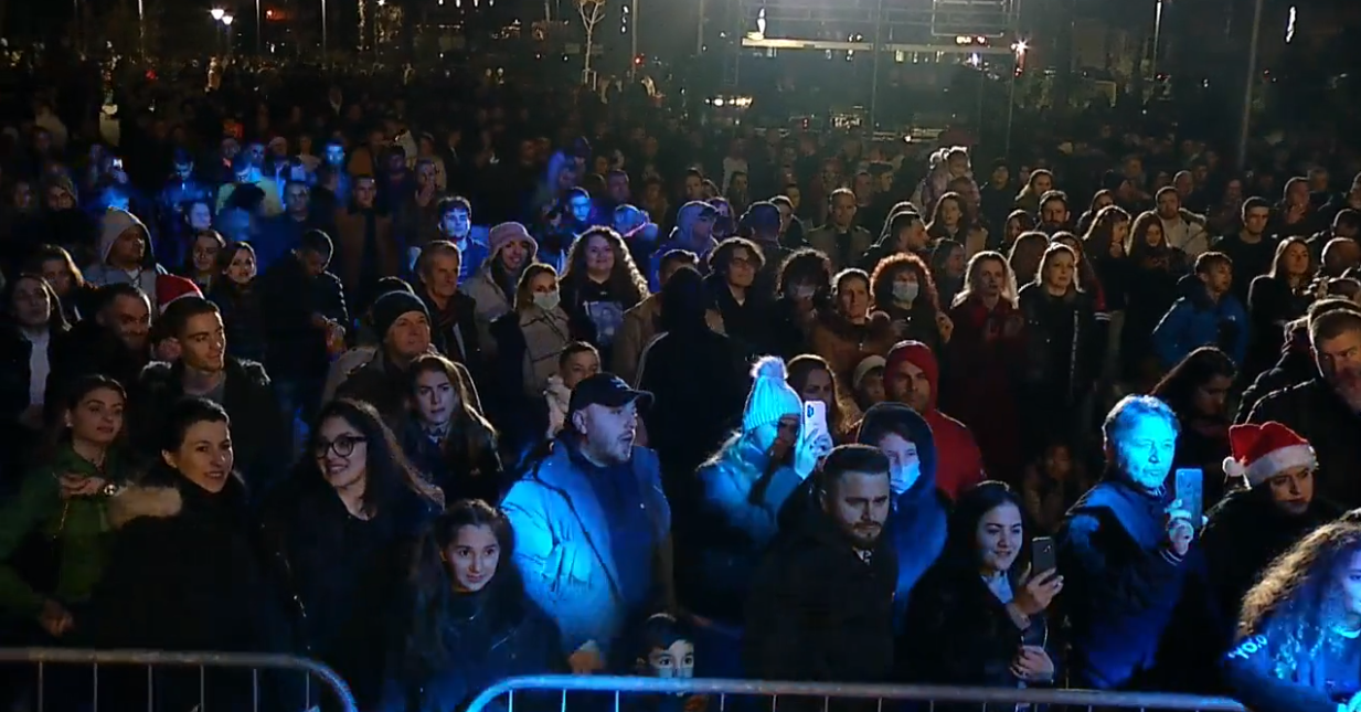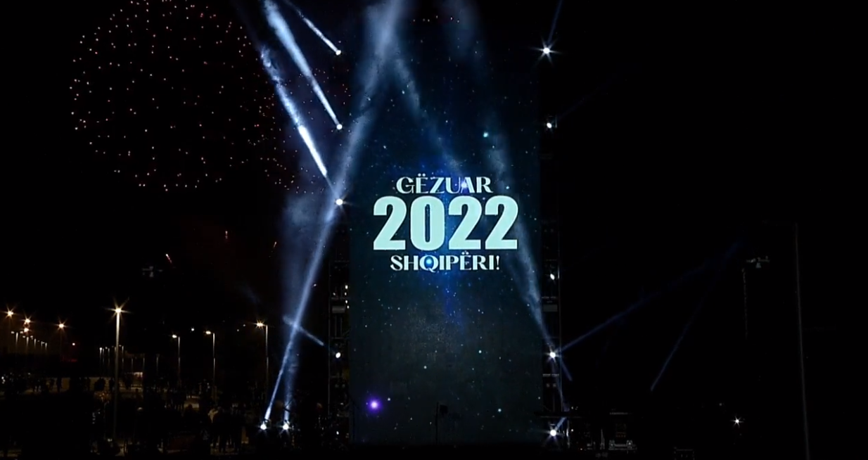 Në ekranin e madh të vendosur në shëtitore nisi numërimi mbrapsht sapo akrepat iu afruan 12-ës, ndërsa u shfaq eedhe godina shumëkatëshe e Dubait Burj Khalifa e cila u ngjyros kuq e zi.