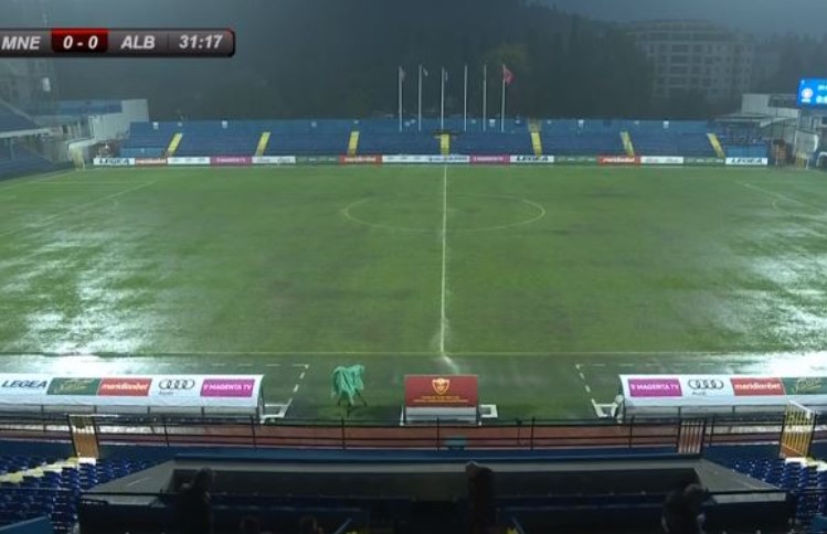 Ndërpritet përfundimisht ndeshja kualifikuese e Europianit të U21, Mali i Zi-Shqipëri. Shkak për këtë vendim janë bërë reshjet e shiut me intensitet të lartë në Podgoricë, çka ka bërë që sfida të mos luhet dot në kushte normale.