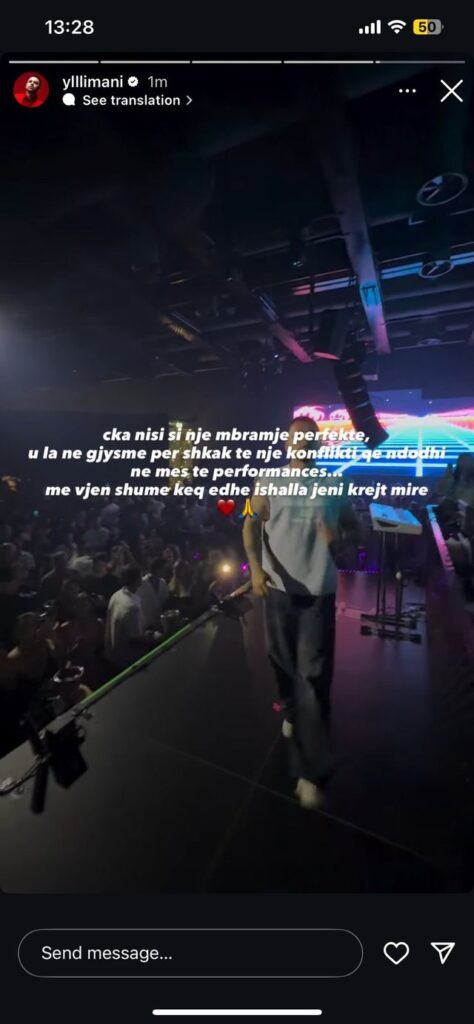 “Çka nisi si një mbramje perfekte, u la në gjysmë për shkak të një konflikti që ndodhi. Më vjen shumë keq edhe ishalla jeni krejt mirë.”