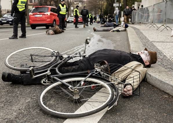 Në kujtim të viktimave që humbën jetën në mënyrën më makabre në Bucha të Ukrainas, një grup njerëzish protestuan në mënyrën e tyre përpara ambasadës ruse në Pragë.