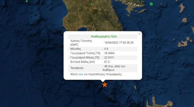 Ndërkohë epiqendra e tij ishte 46 kilometra në perëndim.