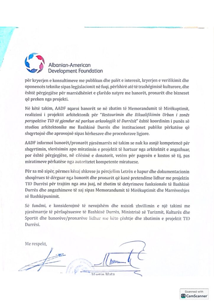 Në një prononcim për mediat, deputeti Cara dënoi heshtjen e bashkisë Durrës dhe e cilësoi korruptiv projektin që po zhvillohet nga institucionet shqiptare dhe Fondacioni Shqiptaro-Amerikan për Zhvillim.