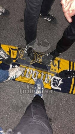 Në faqen e huliganëve në rrjetet sociale, tifozët sllovenë kanë publikuar shallin e dardanëve që duket kishin marrë pas përballjes me tifozët “miq” duke e shkelur me kënbë. Një gjest i turpshëm që gjithsesi nuk e zbeh arritjen e madhe të ekipit kosovar në këto eliminatore.