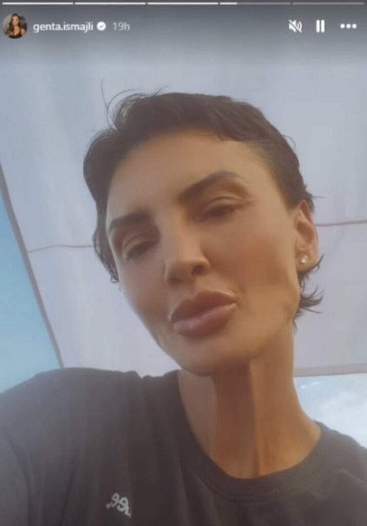 Në një video të publikuar në Instastory, Genta shihet me flokë të shkurtër të stiluar pas, makeup minimalist dhe një bluzë të zezë casual, duke reflektuar një pamje të freskët dhe të relaksuar. Me një pozë lozonjare dhe një puthje drejtuar kamerës, ajo përcolli energji pozitive dhe vetëbesim të plotë.