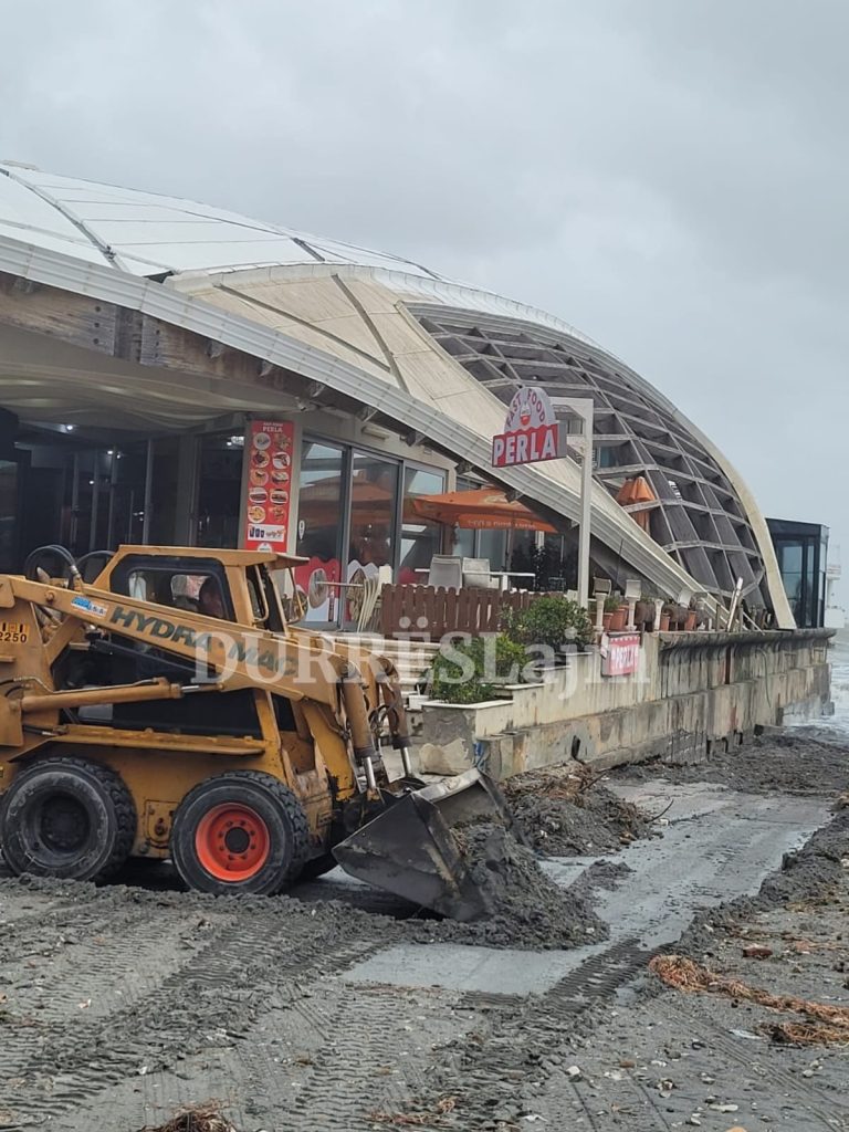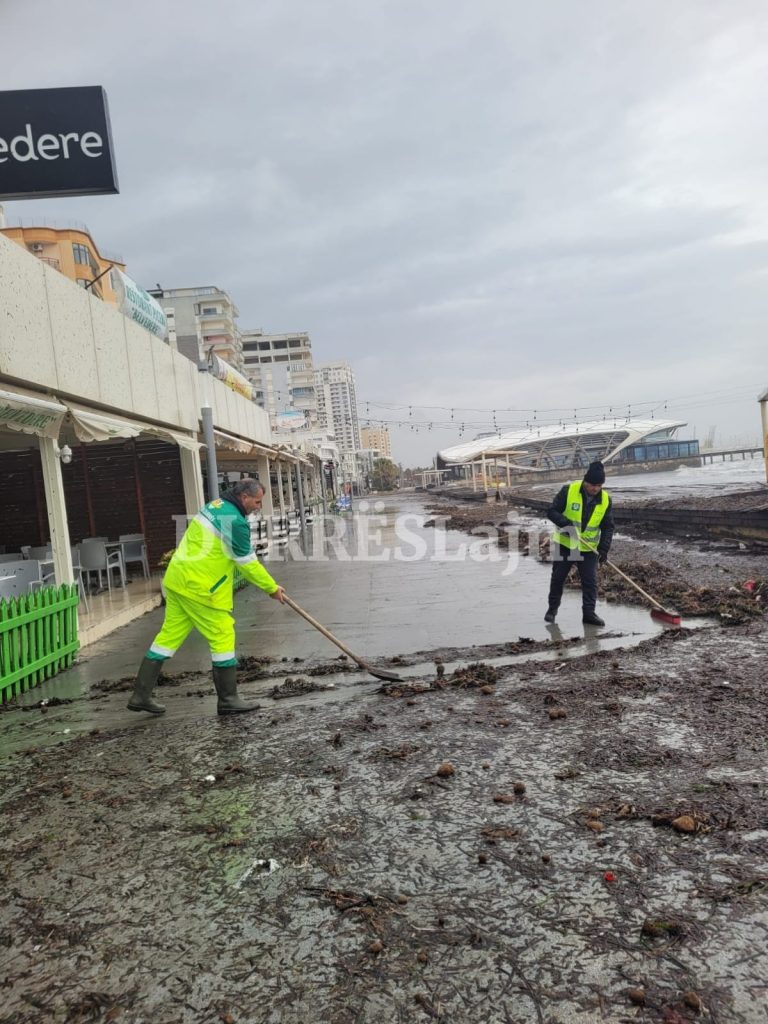 Si pasojë e fortunalit të shoqëruar me reshje shiu, erë të fortë e dallgë të larta, shëtitorja “Taulantia” ishte mbuluar në një pjesë të madhe të saj nga pirgjet me leshterikë.