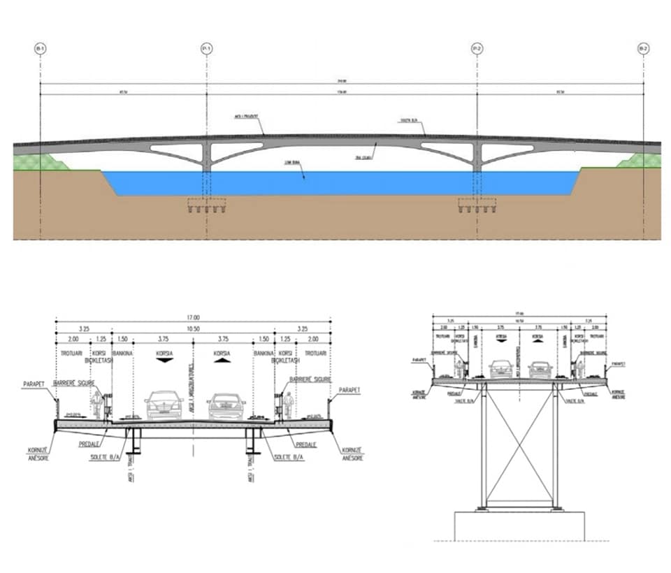 Ura do të jetë 17m e gjerë, do të ketë dy korsi trafiku nga 3.75m secila, dy trotuare nga 2m secila dhe dy korsi biçikletash nga 1.25m secila