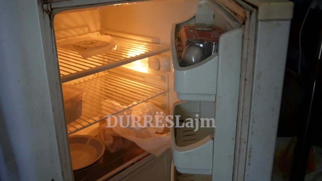 Pjesa më e madhe e orendive që ndodhen në garsonieren e improvizuar janë të falura, ndërsa frigoriferi thuajse bosh është dëshmi e varfërisë në të cilën jetojnë dy të moshuarit së bashku me djalin 27-vjeçar.