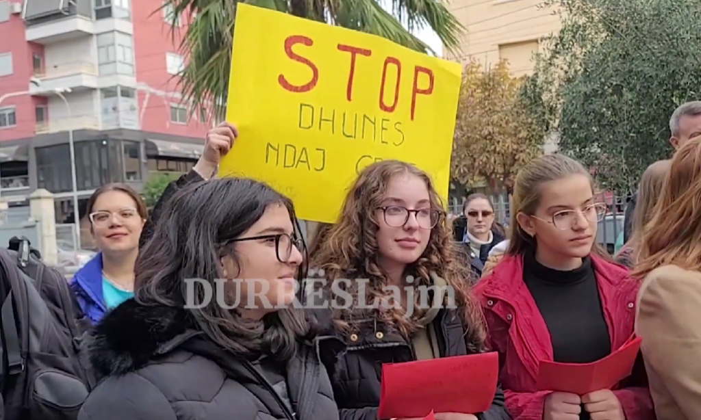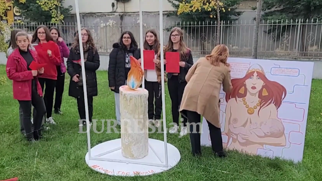 Të rejat gjimnaziste mbanin në duar kartonë me mesazhe sensibilizuese, që u thanë edhe nga gratë aktiviste, të cilat mbajtën fjalën gjatë aktivitetit.