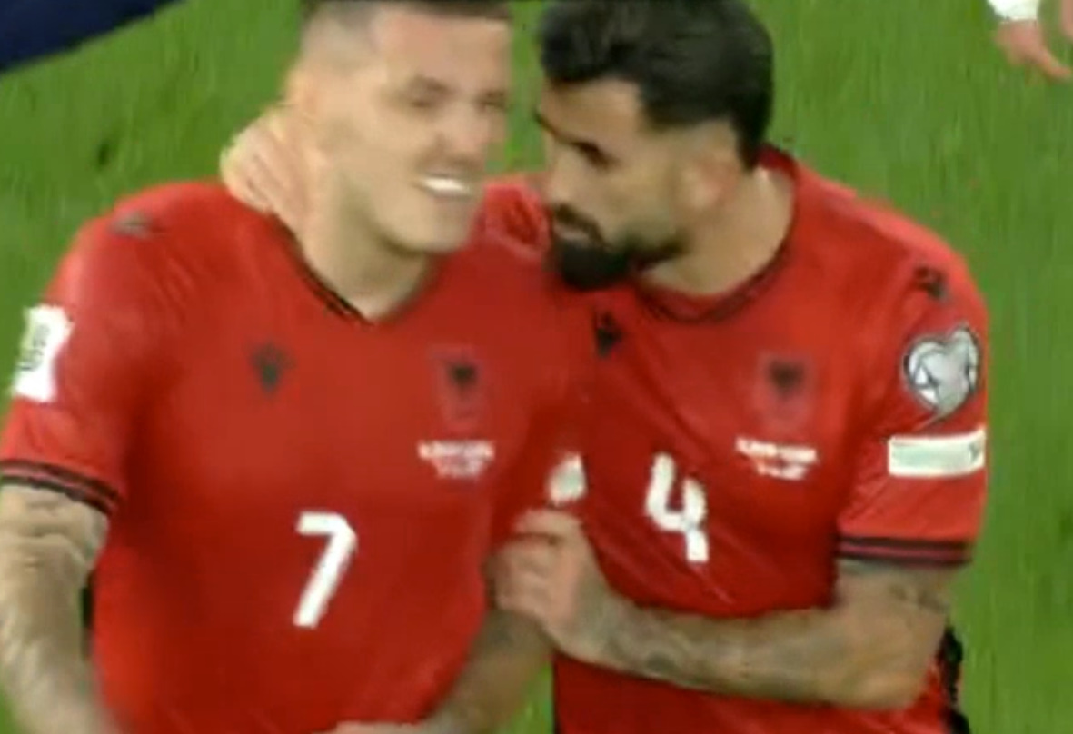 Pasi arbitri Davide Masa i dha fundin pjesës së parë të gjithë lojtarët e Kombëtares shkuan të ngushëllojnë sulmuesin lushnjar.