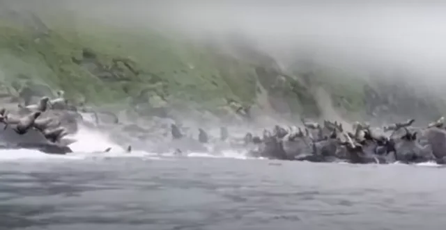 Një turist ishte në një tur me varkë rreth Antsiferov, një ishull vullkanik i pabanuar në Rusi dhe tërmeti goditi vendin ndërsa ai ishte atje dhe po filmonte. Kamera e tij filmoi dhjetëra luanë deti të ulur në shkëmbinjtë e ishullit, të cilët hidheshin në det sapo ndjenë tërmetin.