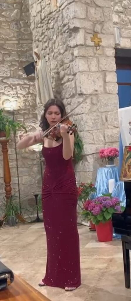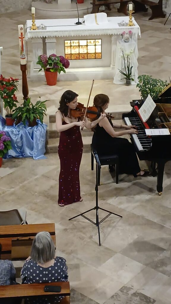 Bashkë me ta, salla e Kon-katedrales “Shën Luçia” ishte mbushur plot me artdashës për të ndjekur një nga violinistet e reja, e cila përfundoi me rezultate të shkëlqyera ciklin 12-vjeçar në liceun e qytetit bregdetar.