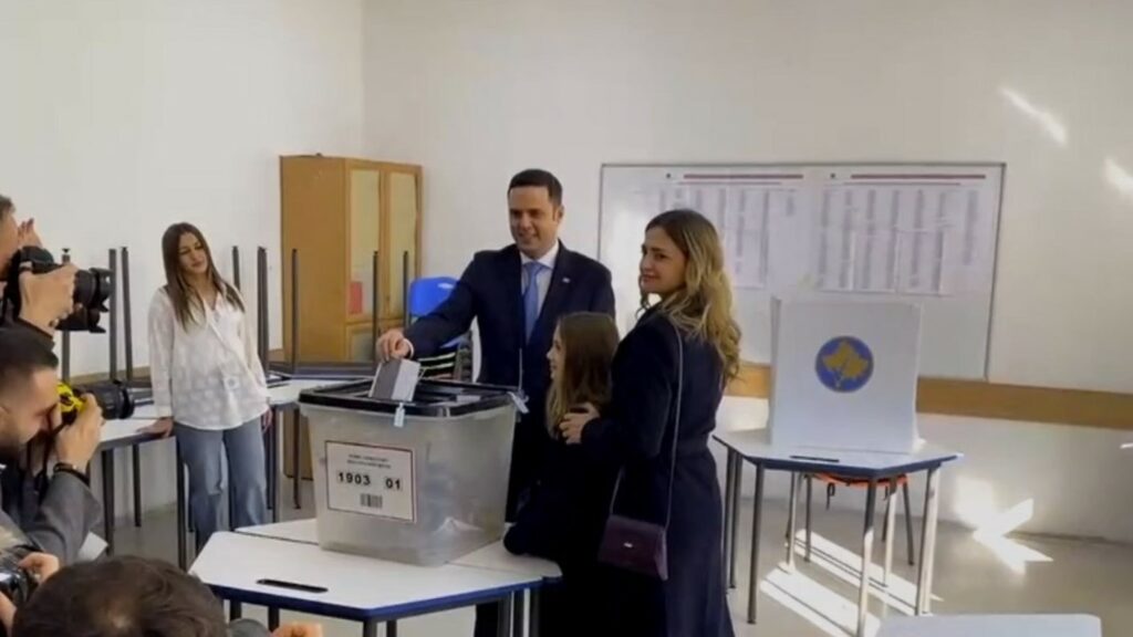 Kryeministri Albin Kurti, kandidat i Lëvizjes Vetëvendosje për një mandat tjetër në krye të qeverisë, votoi së bashku me bashkëshorten e tij, në Prishtinë.