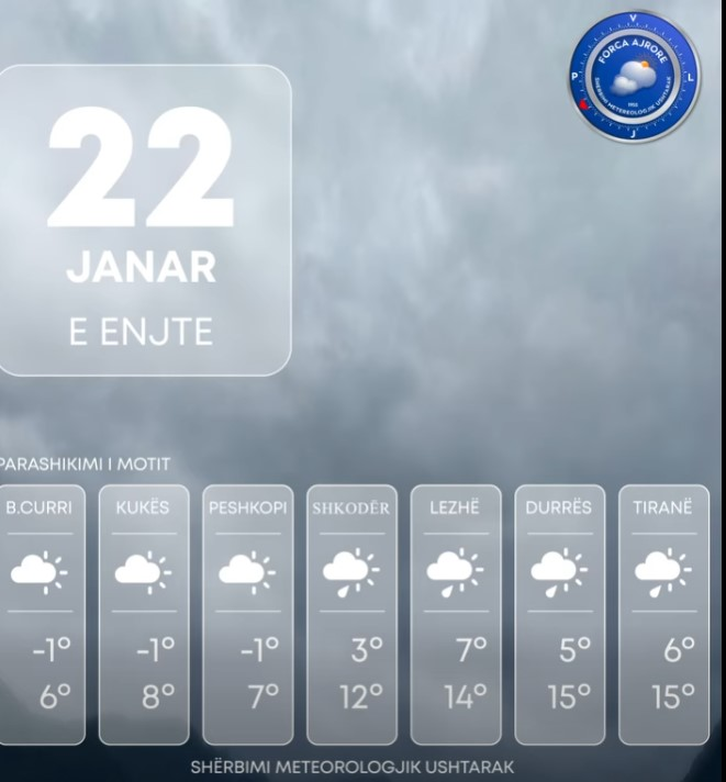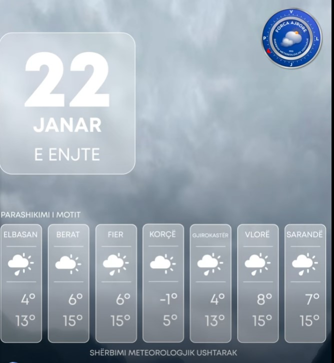 Moti parashikohet me vranësira mesatare deri të dendura si dhe intervale të herëpashershme me diell.