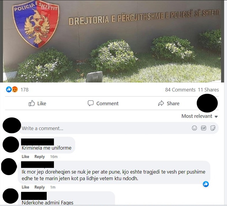Intensiteti i komenteve dhe irritimit i qytetarëve, të cilët po reagojnë me irritim ndaj Policisë së Shtetit është aq i madh sa administratorët e faqeve kanë filluar të fshijë masivisht gjithçka që ka të bëjë me ngjarjen e rëndë.