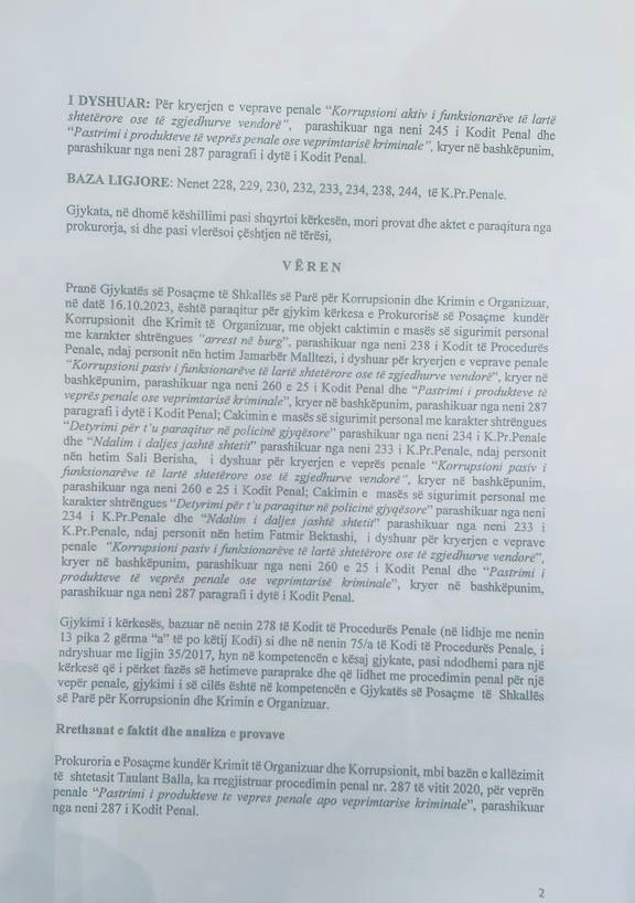Siç shihet edhe në dokumente, ndërtuesi Fatmir Bektashi, ndaj të cilit u caktua masa ‘detyrim paraqitje’ akuzohet për të njëjtat vepra si Malltezi.