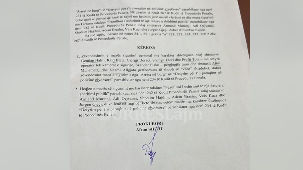 Ditën e sotme, prokurori Afrim Shehu ka kërkuar për ta zëvëndësimin e masës së sigurisë nga “Arrest në burg” në “Detyrim paraqitje”.