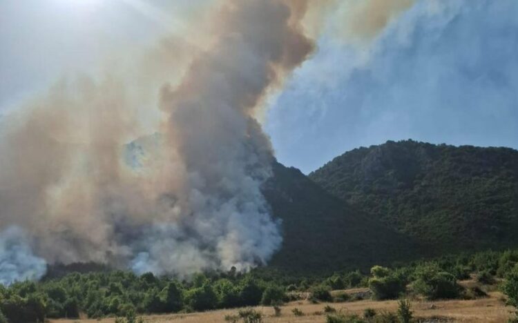 Një zjarr i madh ka përfshirë Parkun Kombëtar të Prespës, me flakët e shfaqura mbi fshatin Pustec.