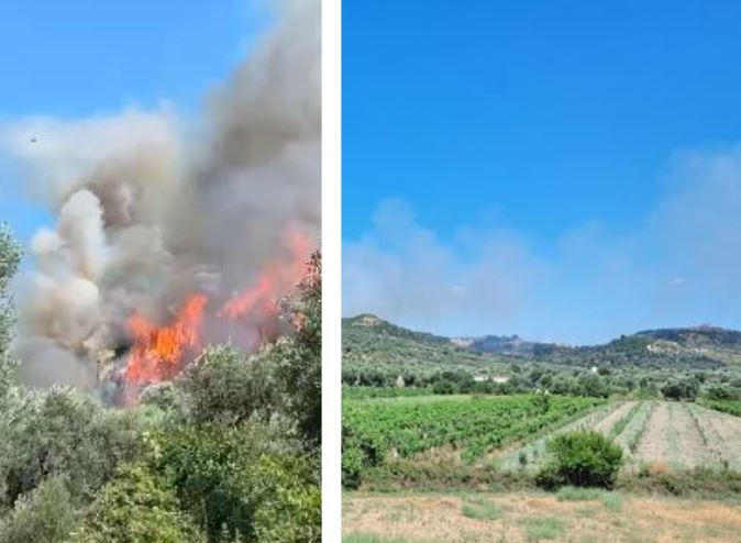 Një zjarr masiv ka përfshirë zonën pranë varrezave në fshatin Hoshtimë të Vlorës.