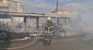 Zjarri “përpiu” autobusin në Durrës, shihni pamjet nga vendngjarja (VIDEO)
