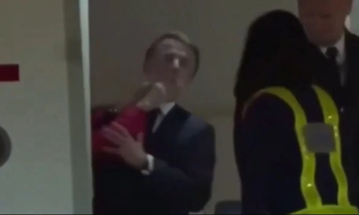 Gruaja që qëndronte pranë tij ishte gruaja e tij, Brigitte Macron. Pamjet zgjatën disa sekonda, por ishin të qarta: një shuplakë në fytyrën e presidentit ndërsa ai përgatitej të zbriste.